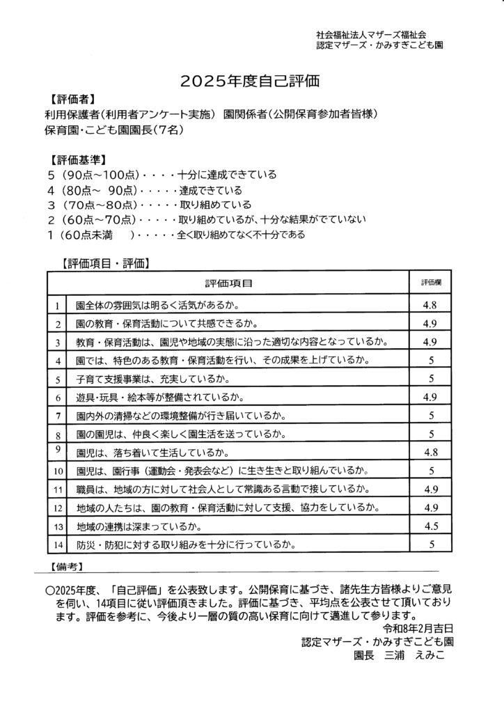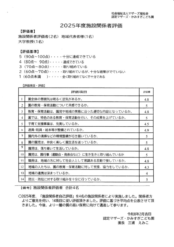 2025年度、「施設関係者評価」及び「自己評価」を公表いたします。